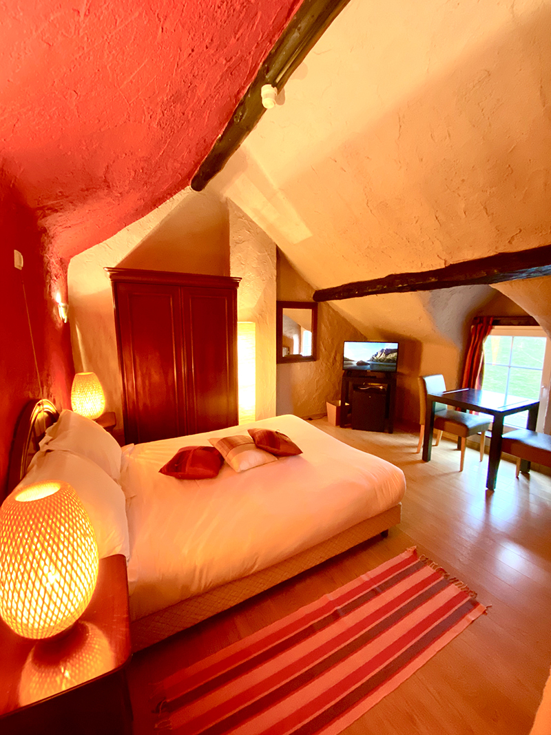 Chambre 5 JE veux réserver cette chambre Caractéristiques Lit double Armoires Salle de bain privative TV (Smart TV & Netflix) Wifi Minibar Petits animaux acceptés Chambre non-fumeurs